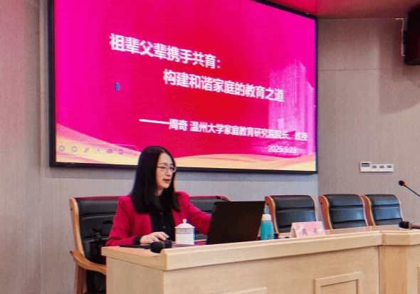 5月23日上午,受浙江省开放大学邀请,周老师来到义乌学院参加浙江省社区家庭教2025 年学术研讨会,并围绕《祖辈父辈携手共育:构建和谐家庭的教育之道》做专题讲座,结合丰富实践经验和深入研究成果,为社区教育工作者提供祖辈与父辈协同育人策略与方法。