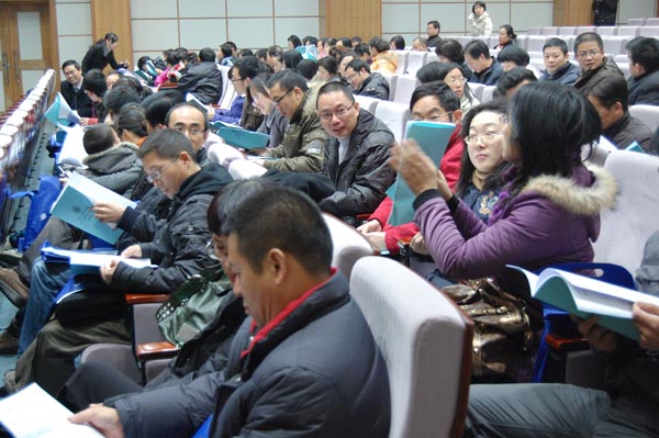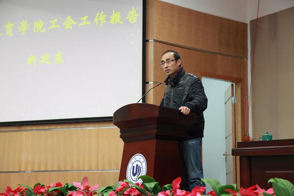 学院胡伟国书记主持大会的第一次会议。胡来林院长代表学院行政班子作主题为《聚精会神搞专业建设 一心一意谋学科发展》的工作报告。他对两年来的主要工作进行了回顾,从教学管理、人才建设、办学资源、专业建设、学科建设、学生工作、党建工作、教师教育基地建设等八个方面,向全体教职工汇报了所取得的成绩,他还就今后五年的工作目标和重点建设项目指标进行了深入的分析和解释,并提出具体的工作思路与主要措施,详细、务实的工作报告获得了全体教职工热烈的掌声。这热烈的掌声中,既包括对学院领导班级工作业绩的肯定,又深深蕴涵了对教师成人网站 今后发展目标的满怀信心。学院工会主席折延东同志在大会上作《以人为本 民主团结 促进学院和谐发展》的工会工作报告,他向大家汇报了学院工会参加学校各项工作和活动、组织学院教职工文娱活动、积极建设职工之家、积极关心教职工生活等有关情况;还对今后工会工作提出具体思路。在第一次全体会议后期,还进行了《教师成人网站 津贴分配方案(草案)》和本次会议提案情况的说明。