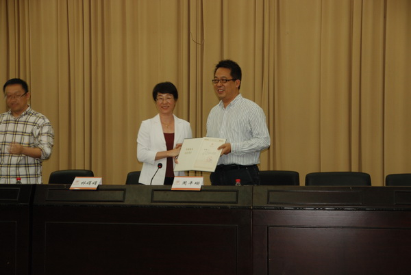 在典礼上,林娟娟副校长代表温州大学向周平珊院长颁发了温州大学兼职教授聘书。