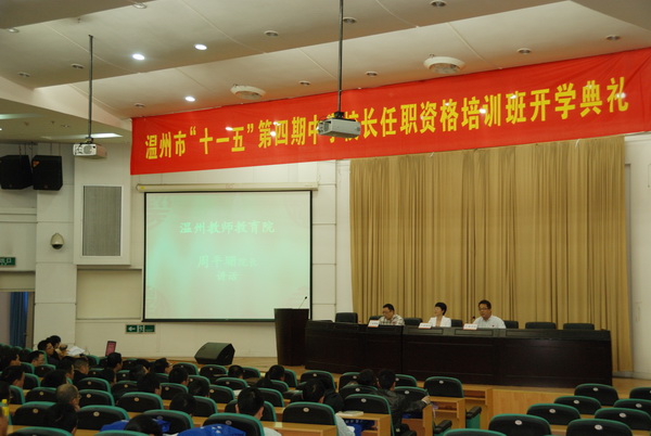 11月10日下午,温州市“十一五”第四期中学校长任职资格培训班开学典礼在学院路校区信息楼报告厅隆重举行。林娟娟副校长,温州市教师教育院周平珊院长,成人网站
