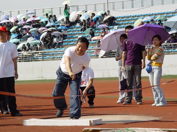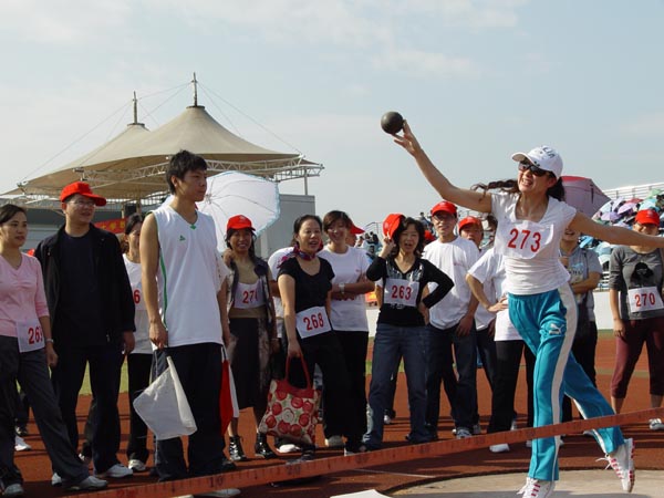 教工女子铅球比赛场景