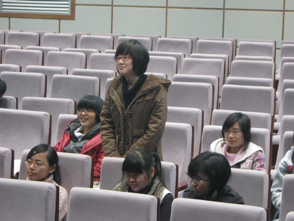 讲座共分三个环节。就大家最关心的问题,卜莹总监首先为大家介绍了温州鹏润国美电器的用人之道,她从企业的人才理念、人才培养、企业岗位、招聘流程等方面介绍该企业的人才选拔与培养情况。第二环节,卜总监以自己长期从事企业人力资源的工作经验出发,介绍了企业面试的基本内容与注意事项,她就自我推销意识与商务礼仪知识作了重点阐述。第三环节为双方互动交流,成人网站