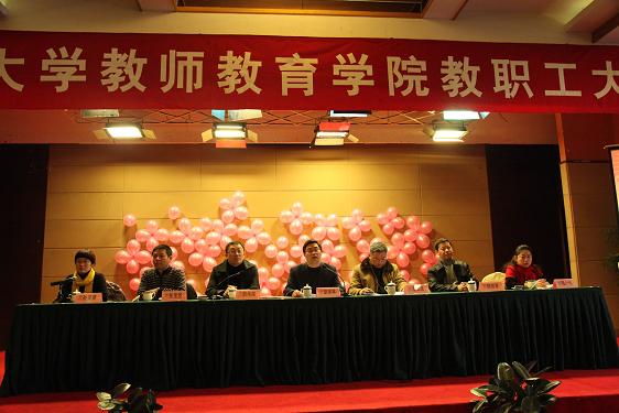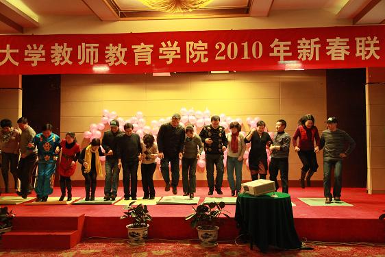 的全体教职工在此欢聚一堂。在首先进行的教职工大会上,常务副院长胡来林对2009年学院发展的整体情况做了简要介绍:经过全院师生一年的不懈努力,学院形象不断提升,资源优势明显增强,行政人员积极进取,整个学院充满了积极奋进的良好氛围。随后,胡院长公布了一批在教学工作中表现优秀的教师名单和在各项学科竞赛中获奖的学生名单。讲话最后,胡院长为全院老师送上新年祝福,会场响起阵阵热烈的掌声。接下来,党总支书记胡伟国为成人网站