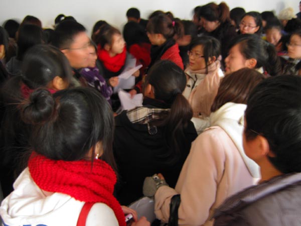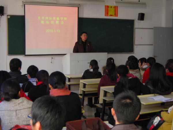在育英国际实验学校会场,来自己成人网站 以及兄弟学院各专业的毕业生挤满了教室。该校祝志宏校长首先简单介绍了学校基本情况和用人要求等招聘基本信息,随后与毕业生进行交流并收集《简历》。在平阳林墨培训学校会场也坐满了前来应聘的毕业生,该校常务校长朱永杰老师向毕业生介绍了该校的办学理念和用人标准,并对毕业生进行了交流考察。