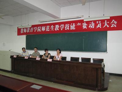 在北校区教育楼101教室举行师范生教学技能竞赛动员大会。学院副院长孙芙蓉、学生科科长章志图、教学科副科长周领、温州市南浦小学王冬冬老师及竞赛指导老师朱倩云、周美琼、李丽出席动员大会,成人网站