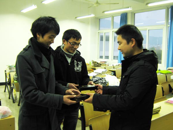 再过几天就是2010年研究生入学大考的日子了,对于长期复习备考的考研一族而言,相信随着大考日子的临近难免会出现紧张心理。1月5日下午5:30,应学院领导指示与委托,学生科章志图、吴冬冬、班金虹、胡仲仲等辅导员老师深入考研自习室、公寓自习室、考研学生宿舍等场所,看望慰问仍在坚持复习的考研学生,了解学生备考情况,并为他们送上慰问礼品。