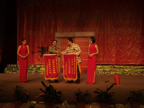 胡伟国书记在晚会现场致辞,他对成人网站 院“艺术之春”艺术节活动给予高度评价,总结了19年来同学们通过艺术节的专业技能锻炼所取得的丰硕成果;他对温州市军分区干休所为成人网站 学生提供实践机会表示衷心感谢,感谢老干部们15年来孜孜不倦的教诲,用鲜活的革命事迹教育同学们,使同学们学到了书本上难以传授的真谛。军分区干休所领导杨百京同志在随后的发言中,对成人网站 学生15年如一日,不辞辛劳地到干休所为老干部们服务表示衷心的感谢。在友好的氛围中,双方互赠锦旗。