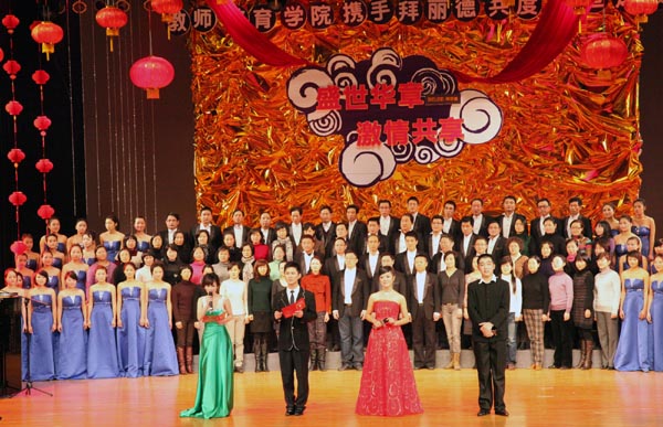 晚会的压轴大戏是全院教职工献唱的大合唱《中国中国,鲜红的太阳永不落》。全院教工为了这个节目可是花了很大心思与时间,而他们在台上的完美表现,也赢得了现场同学们阵阵热烈欢呼,师生同乐,其乐融融,这也昭示着教师成人网站 将以团结奋进的最佳精神面貌迈入崭新的一年。让我们共祝奋进中的教师成人网站 ,继往开来,再创新辉煌!(文/楼英姿、罗冠男;摄/赖文华;编辑/章志图)