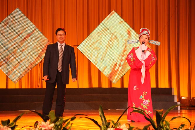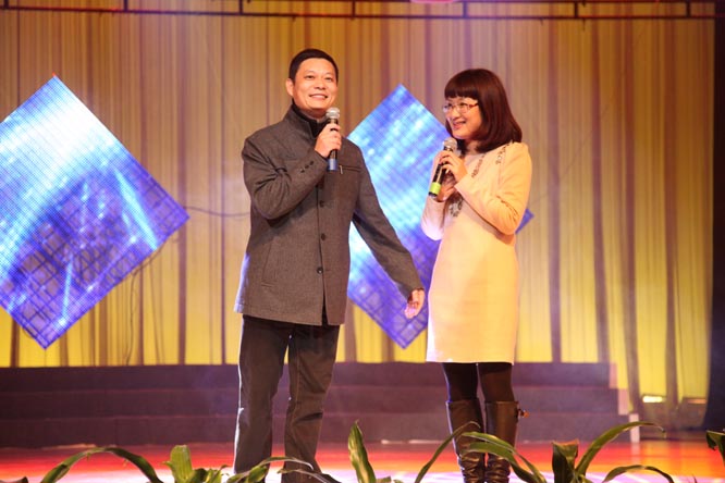 由全院领导联袂演出的《教工歌曲联唱》将晚会推向高潮。老师们激情的演唱,动听的歌声尽展学院教师别样的风采,精彩绝伦的演出引得全场尖叫声连连,成为整场晚会的最大亮点。