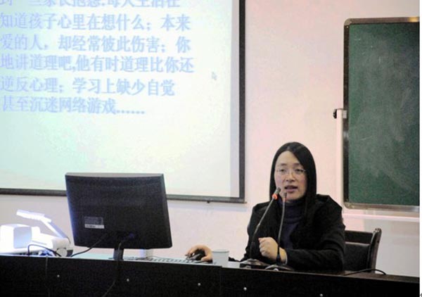 副教授、温州大学心理健康教育工作校内专家周奇副教授为大家授课。周副教授从“榜样的力量”、“家长如何做到与孩子有效沟通”、“家长如何成为孩子可尊、可信、可亲的好朋友”等几大方面内容与到会的家长分享了家庭教育中的几种比较成功有效的方式方法,并通过实例讲述家庭教育的重要性、必要性及具体操作性。