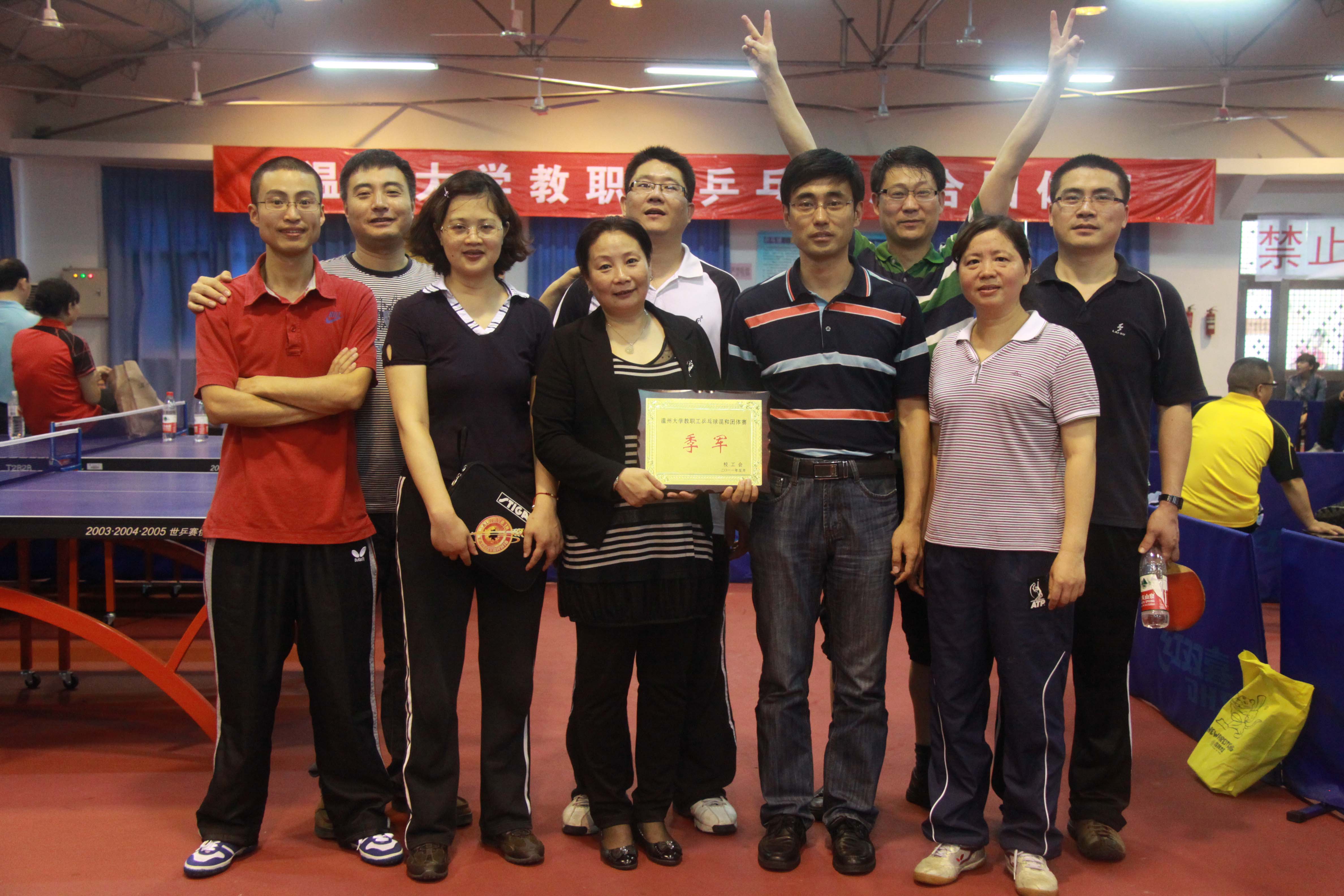 由金建钰、朱倩云、蔡联群、胡来林、胡雯、林莹、徐平、折延东、郑晓和曾国等10位老师组成的代表队一路拼搏,齐心协力,最终夺得团体季军。