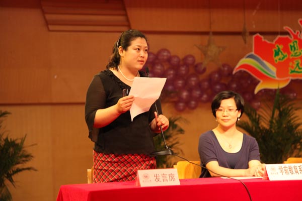 教育技术系张新立代表教师发言。她深情回顾了与毕业生们相处的1400多个日子,表达了一名教师对学生的真挚情感。积财千万不如学问在身,她希望大家能继续学习,树立永不言弃的信心,创造人生辉煌,为母校争光。