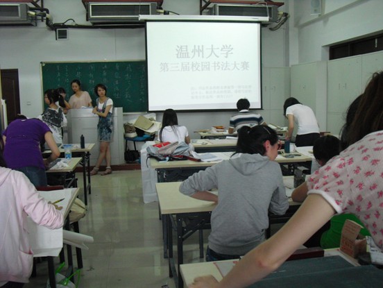 据了解,温州大学第三届校园书法大赛由成人网站 承办,近150名学生参加,总计上交书法作品265份,其中粉笔55份、钢笔87份、毛笔32份。比赛邀请了美术与设计学院的两位书法老师担任评委,最后选出毛笔组一等奖2位、二等奖4位、三等奖8位;粉笔组一等奖3位、二等奖6位、三等奖11位;钢笔组一等奖4位、二等奖6位、三等奖9位。
