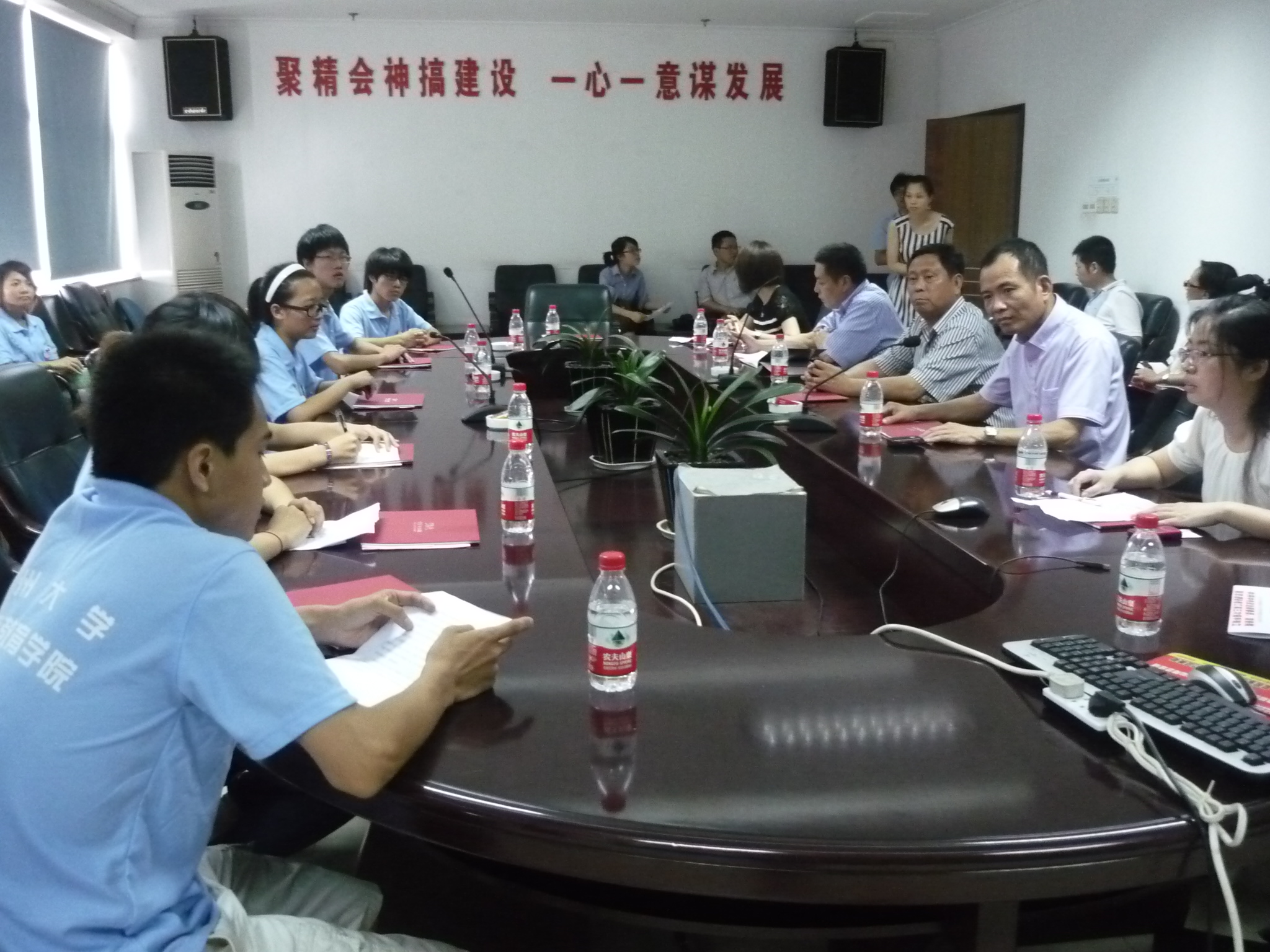 座谈会于13日中午召开,会议伊始,教师成人网站 党委副书记嵇小怡老师对参加此次会议的领导和会议流程做了简单介绍,并向瑞安团市委和瑞立集团的大力支持表达了真挚的感谢。会议分三个流程。首先,瑞立集团党委书记陈康进向实践队队员介绍了瑞立集团的发展史和自己的奋斗史,希望他们能有吃苦的精神并能抓住机遇与时俱进。同时他希望大学生能从基层干起,从而深入基层,将其作为人生的一大财富。接着知行岭雅实践队队长陈强发言,他简单介绍了知行岭雅实践队的情况并提到这几天面对的困难以及实践队团结协作的精神。他用简单朴质的语言表达了将知识传播中华大地的愿望。实践队制定的课程如感恩课堂“下车间”活动和“永远跟着党走”的系列活动得到了各级领导的肯定。温州大学党委书记陈福生老师向知行岭雅实践队的队员们提出了如下四点希望:一、提高社会责任感。二、提高感恩意识。三、培养艰苦朴素精神。四、培养团队精神。陈书记特别强调提高感恩意识的重要性并提到胡锦涛主席的两次重要讲话,他希望知行岭雅实践队的队员们能将创造思维和社会实践相结合,学会感恩父母,回报父母,感恩社会,回报社会等。
