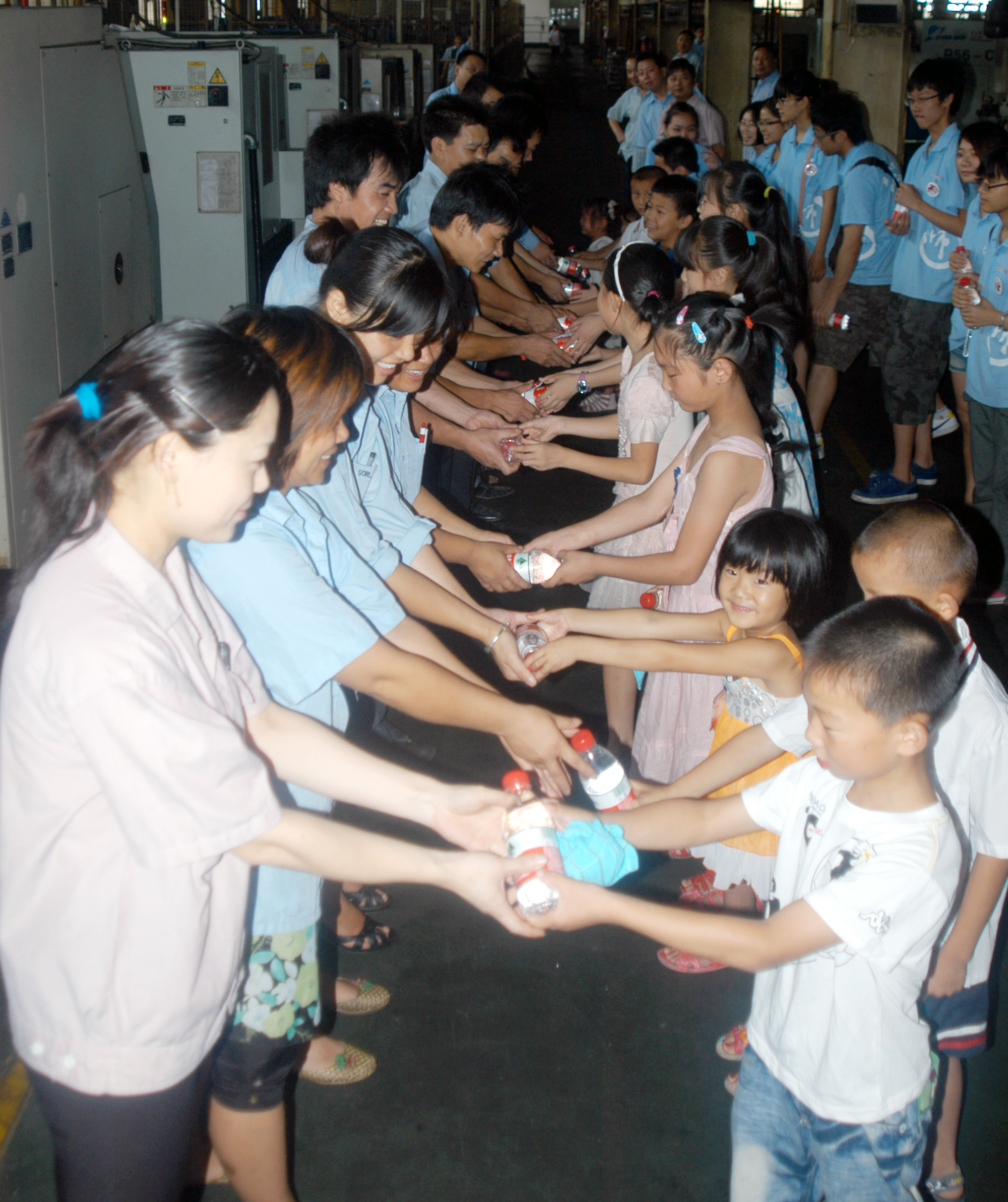 14日的早晨,知行岭雅实践队东山小分队的6名实践队队员早早地来到教室,选出了年龄适中的学生去参加“下车间”活动。在队长陈强以及各队员的带领下,集体乘坐瑞立集团的班车与八十亩小分队的实践队队员以及学生汇合。八点半左右,在瑞立集团老师的组织下,知行雅岭实践队队员带领着瑞立集团职工的子女,有秩序地进入车间探望爸爸妈妈和叔叔阿姨,并为他们献上了矿泉水以及清凉油。孩子与父母间默契的互动让在场的领导和实践队员们感受到一种温暖和感动。