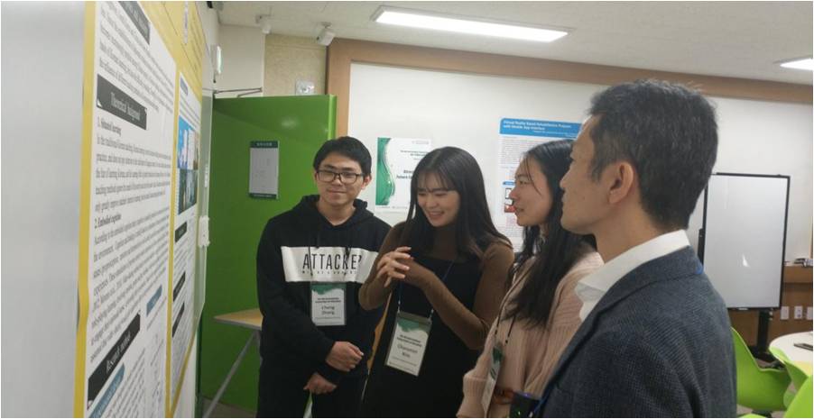 本次会议上,成人网站 的郑晓丽博士发表了有关“Effects of 360-degree Video and Argumentation on Pupils’ Descriptive Writing Performance with Different Levels of Engagement(360度视频和争论式教学支架对不同参与度学生的记叙文写作绩效的影响)”的研究汇报,剖析360度视频技术在教育领域应用的价值,比较了360度视频对高、低参与度学生的不同影响以及争论式教学支架对高、低参与度学生产生的不同影响,从具身认知和认知负荷角度深度解释了研究结果,为我们的教学提供了直接借鉴和反思作用。另外,成人网站 2019级研究生蒋淑琪同学作了题为“Effects of Argumentation Scaffolding and Group Composition on Argument Skills in Science Education(争论式教学支架和小组组成模式对科学论证能力的影响)”的汇报,2018级本科生叶雨欣进行了关于“Effects of Video Sharing on Korean Pronunciation Proficency in Cloudclass-based Mobile Learning(云班课移动学习中视频分享对韩语发音水平的影响)”的海报分享。会上,参会者积极参与提问,成人网站 与会代表积极回答。