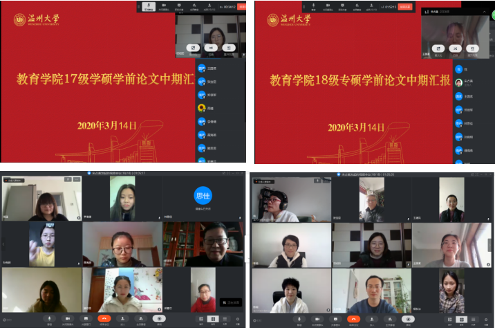2020年03月14日下午14:30,成人网站 17级课程与教学论学前学硕和18级学前专硕在钉钉群举行毕业论文中期汇报。采用别开生面的云汇报,历时三个半小时。参会人员有郑信军教授、王志强教授、郑薏苡教授、张宝臣教授、陈娴园长、宋占美教授、李娟副教授、高瑾副教授及其学前系所有研究生。