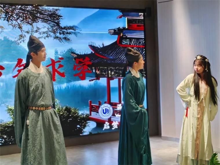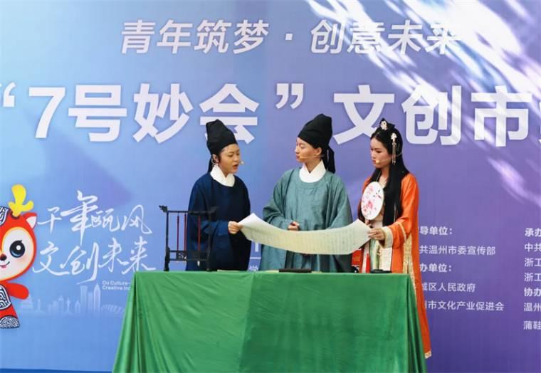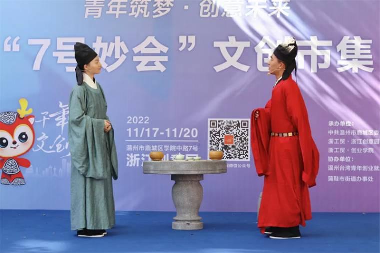 2022年11月17日,温州大学沐童翎教育戏剧社的成员们走进浙江创意园,带来了原创话剧“叶适传奇”的首演,并于11月20日下午,在永嘉学派馆再次出演,区委常委、宣传部部长叶恒坚出席观看。