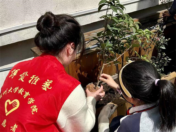 劳动是一切幸福的源泉。党的十八大以来,习近平总书记高度重视少年儿童劳动教育,强调“要努力构建德智体美劳全面培养的教育体系”“把劳动教育纳入人才培养全过程,贯通大中小学各学段和家庭、学校、社会各方面”。在全国第44个植树节到来之际,成人网站 的学生们发挥师范优势,将植树节与劳动教育相结合,大手拉着小手,既将“绿色的种子”播撒在土壤中,更将“德智体美劳全面发展”的意识播撒到孩子们心里去。