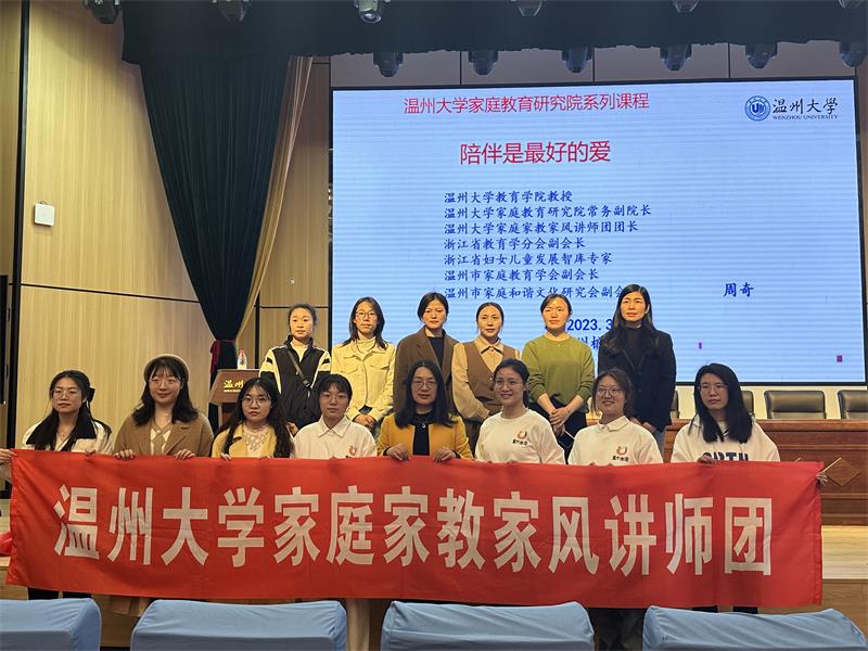 家庭教育爱先行,巾帼奋进新时代。一直以来,温州大学家庭教育研究院巾帼文明岗在树立良好家风、建立和谐亲子关系、推进家校社合作等方面不断努力。温州大学更是在省内高校率先成立家庭家教家风讲师团,不定期面向全市党政机关、企事业单位和大中小学开展宣讲服务,既服务基础教育,又助力地方发展。