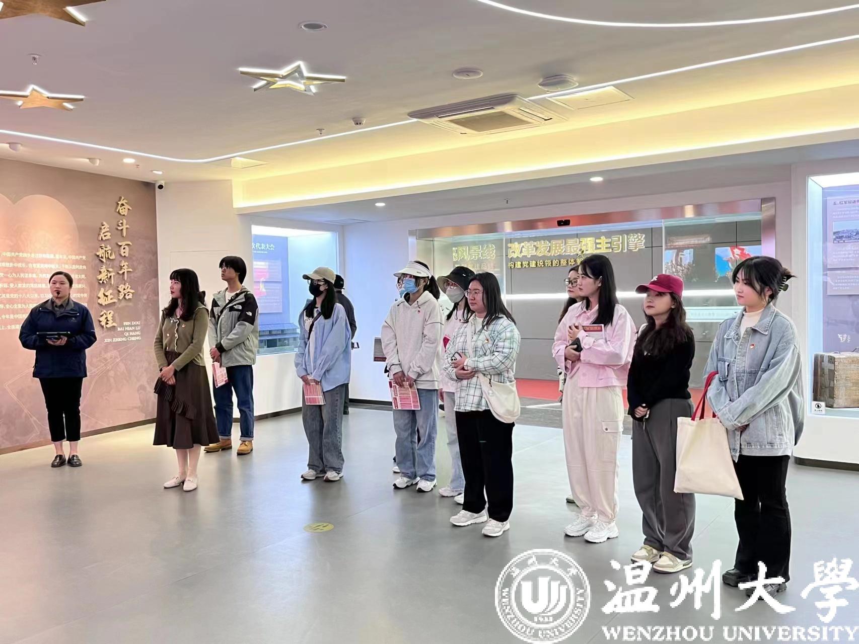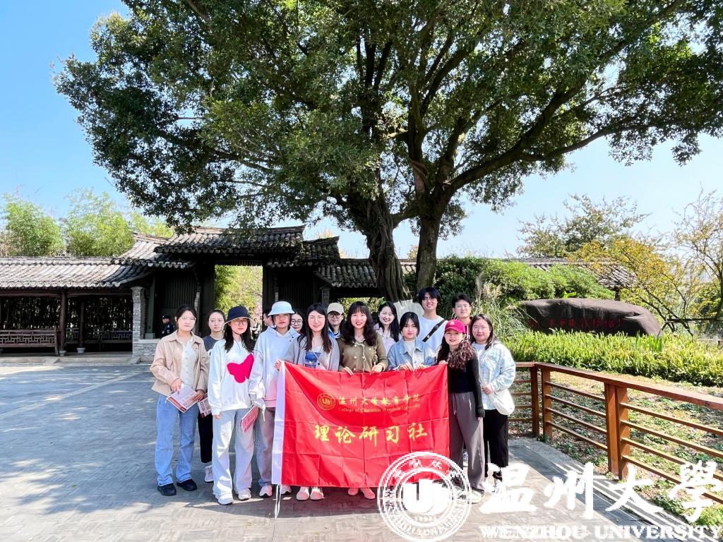 4月2日,成人网站 理论研习社全体成员在黄姣老师的带领下,共赴温州三垟湿地“瓯江红”党建人才综合体开展红色实践调研活动。同学们跟随时光走廊中的“南湖红船”依水行舟,追溯历史记忆里的革命峥嵘岁月,脚步流转间,家国情怀厚植,红色基因代代传。