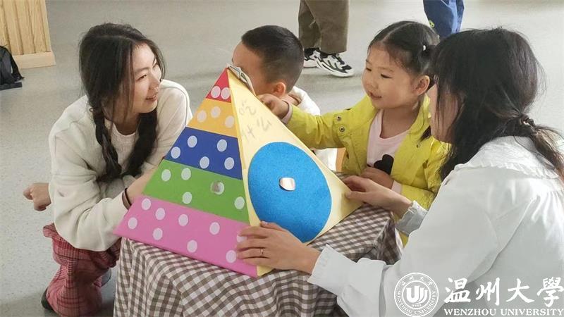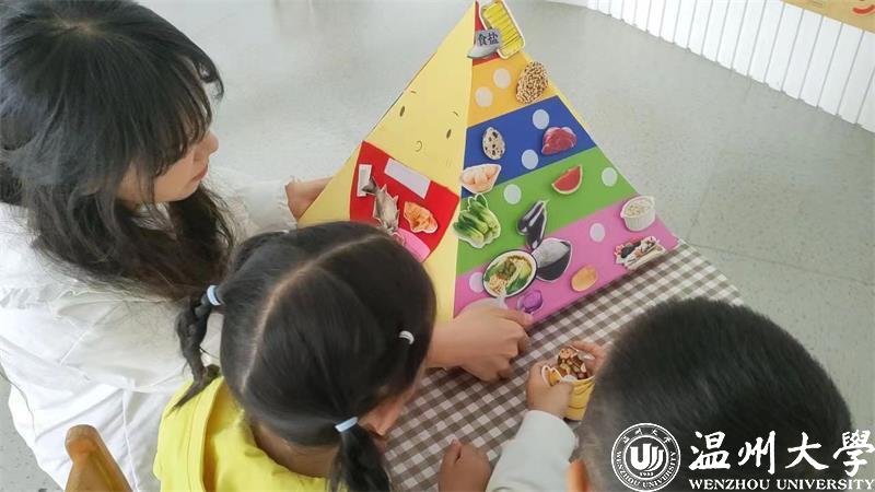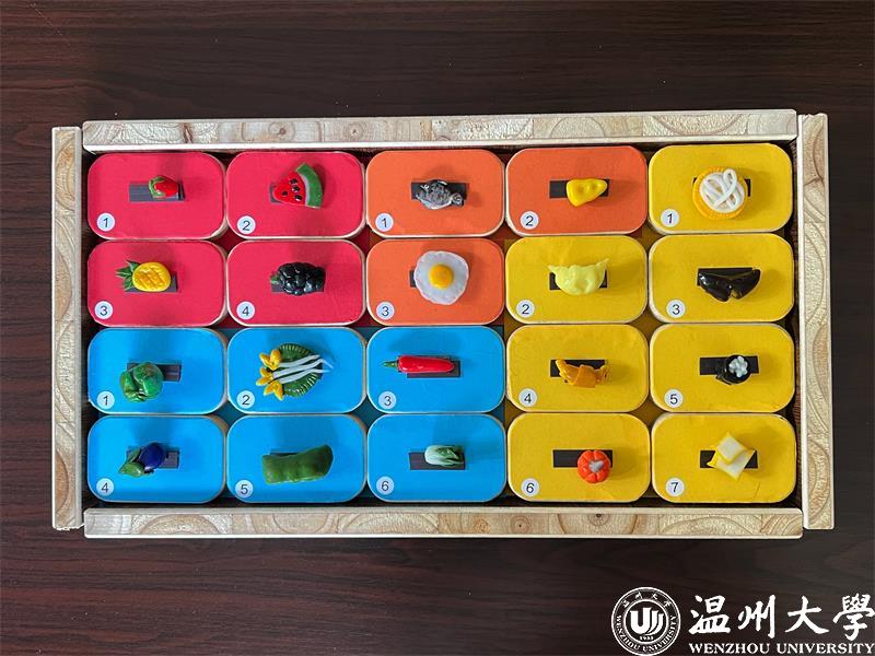 温州大学晓食盘记团队研发的教玩具“食物对对碰”和“膳食宝塔”入园啦!今天来到了温州大学附属茶山第二幼儿园,让我们一起看看这些有趣的教玩具吧。