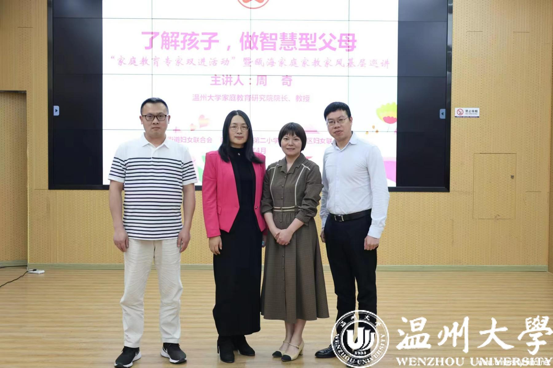 苏霍姆林斯基说:“最完备的教育是学校与家庭的结合。”学校家庭相互合作,协同育人,才能共促孩子成长。近日,温州市妇联推出家庭教育服务进社区进学校“双进”活动暨瓯海家庭家教家风基层巡讲,成人网站 教育系支部书记、温州大学家庭教育研究院院长、温州大学家庭家教家风讲师团团长、温州市家庭教育学会副会长,浙江省妇女儿童发展智库专家,浙江省家庭教育讲师团成员全国家庭工作先进个人周奇教授来到瞿溪第二小学,为四年级的家长们作《了解孩子,做智慧型父母》的主题讲座。