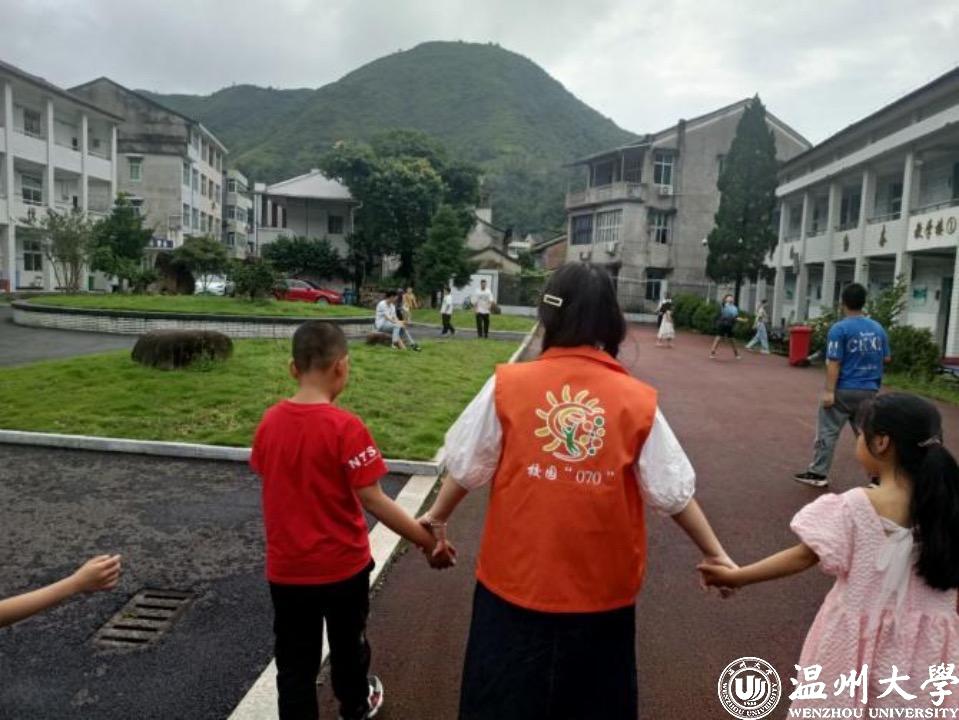 这是近日发生在瑞安市宁益镇小学的一幕。为孩子们带去欢乐的,是来自温州大学的“070”志愿服务队。自2021年起,该团队偶然发现当下校园欺凌现象十分严峻,通过深入调查发现,学生的社会情感能力越低,其欺凌行为或被欺凌事件则发生得越频繁,而提升学生的社会情感能力是改善校园欺凌现象的最有效途径。于是,围绕五大方面的社会情感能力,同学们设计出了零欺凌系列原创课程。