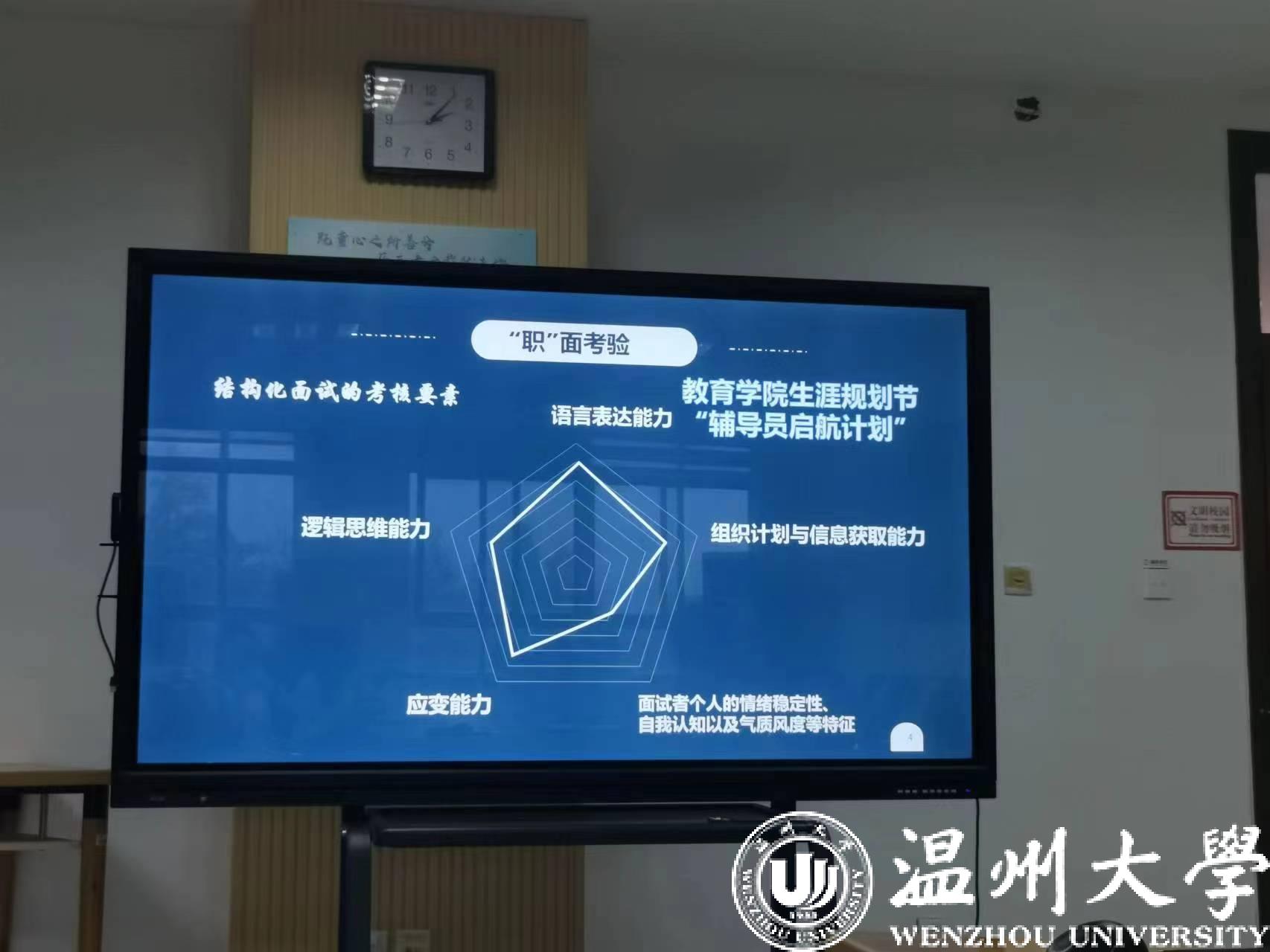本次“未来辅导员启航计划”主要从辅导员岗位认知、理论知识、面试技巧以及模拟考试实践训练等方面依次开展。在了解辅导员这一岗位的入门环节,成人网站 辅导员李金伟围绕“‘职’引灯塔——如何成为一名辅导员”这一主题,讲述了自己从温大研究生到上岸成为一名温大辅导员的亲身经历。他还为同学们详细介绍了辅导员工作的具体内容。当天到场的许多学生并非应届毕业生,他们纷纷表示,李老师的讲座让自己在迷茫的研一阶段就明晰职业规划。“我更清楚地知道了辅导员这个岗位是否适合我,而不是盲目随波逐流。”