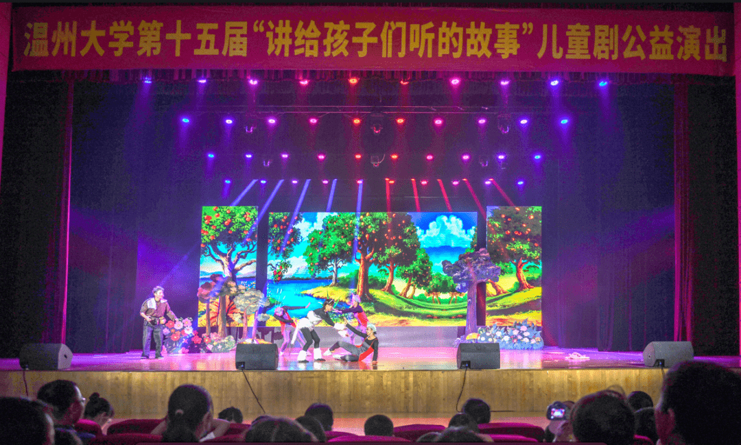 据悉,今年是温州大学童欣儿童剧团举办“讲给孩子们听的故事”儿童剧公益演出的第15年。从2009年开始,温州大学师生秉承师范教育传统,发挥学科专业优势,以关爱儿童、服务社会为宗旨,致力于多种类型儿童剧编创、制作和演出,多年来送戏给城镇、山区、海岛、革命老区的儿童,足迹踏遍温州,辐射省外……十五载守候,十五载坚持,童欣儿童剧团先后推出《魔王卡卡》等30多个短剧和《我不要被吃掉》《白雪皇后》《了不起的狐狸爸爸》《魔法玻璃鞋》《小美人鱼》等大型童话剧作品,已累计演出100多场,参演人数共计4000多人次,受众多达12万余人,既是温州大学的一大校园文化特色品牌,也是温大服务地方的一张“金名片”。