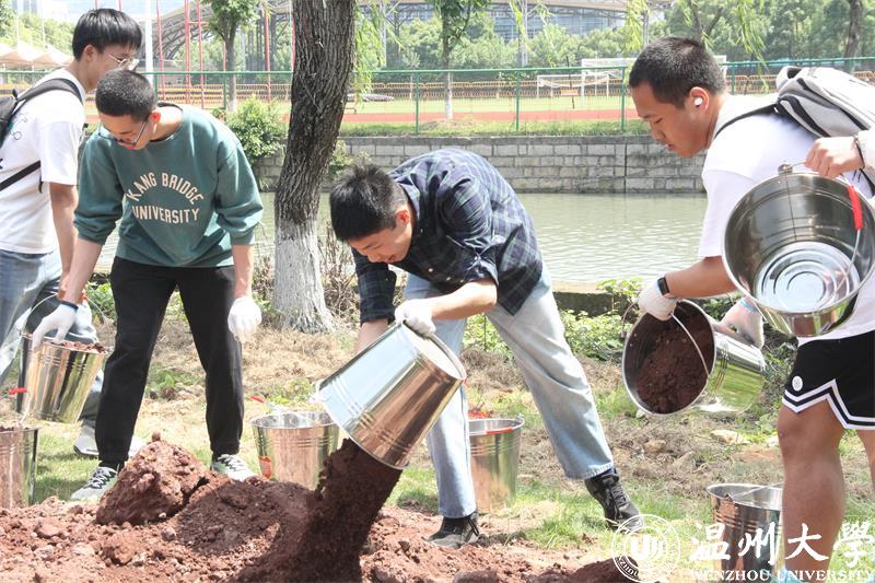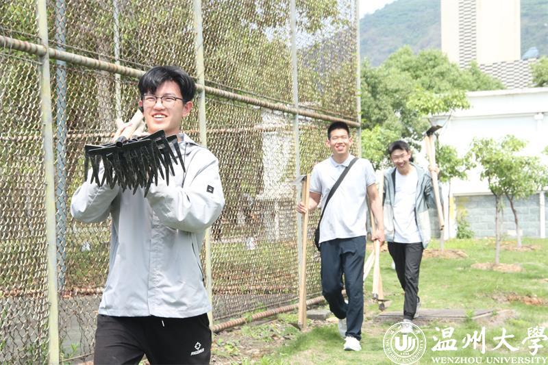六月初夏,已是烈阳高照,却有这样一群学生“全副武装”,每周定期带着铁锹铲子跑去温州大学北校区的一片荒地上,今天看看杂草清理了没,明天看看土地是否平整,后天又思量着该在这儿种什么果苗……