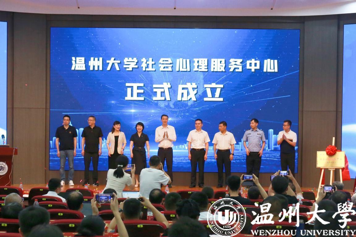 温州大学社会心理服务中心揭牌暨温州市社会治理实践基地授牌及温州市“五失”人员关爱帮扶专题研讨会6月30日在学院路校区隆重举行。校党委书记张健、市委政法委副书记黄建斌等出席启动仪式,参加活动的还有来自温州市、各县市区区委政法委、教育局、公安局、司法局、卫健局、法院、检察院、妇联等单位的负责人和相关业务科室负责人,镇(街道)、联合党委社区副书记或综治办主任,以及来自温州大学心理系的师生代表和温州市心理学会会员近300人。