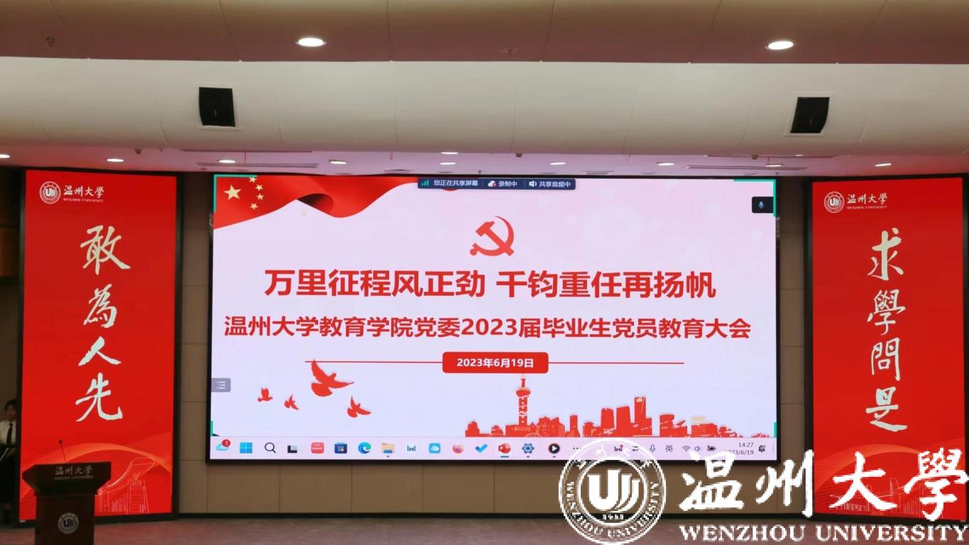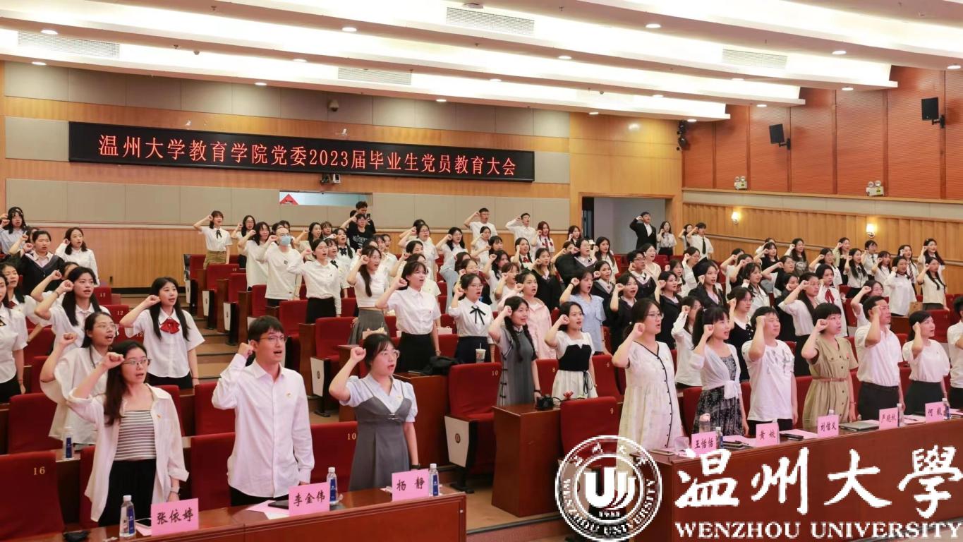 “在校园时,各位党员是同学们的表率;出校园后,大家是社会的中坚力量。在未来,希望各位毕业生不因‘空山不见人’而乱心智,不因花言巧语而迷失方向,成为具有‘广博’师识、‘爱惠’师德、‘雅懿’师表和‘笃艺’师能的新时代教师……” 6月19日下午,一堂主题为“万里征程风正劲 千钧重任再扬帆”的党课在温州大学的校园里开展。