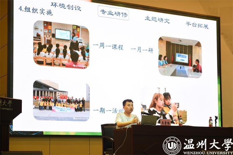 温州大学附属滨海第二幼儿园王青畅老师报告《摄影美育——基于手机拍摄的幼儿美育实践为例》,这是胡铸鑫副教授来园指导近两年的未来教育标杆性项目的实施成果总结。王青畅老师阐述了在大美视野下摄影从娃娃抓起教育初心之路,以环境创设、专业研究、主题研究、平台拓展四方面的实践探索,重点向与会者展示了别具一格的幼儿园创新摄影馆,及开展幼儿摄影实践课程一年多遇到的问题和心得。温大附属滨海二幼将以浙江省中小学摄影教育基地学校的荣誉为新的起点,深入推进课题研究,让幼儿摄影教育服务儿童美育成长。