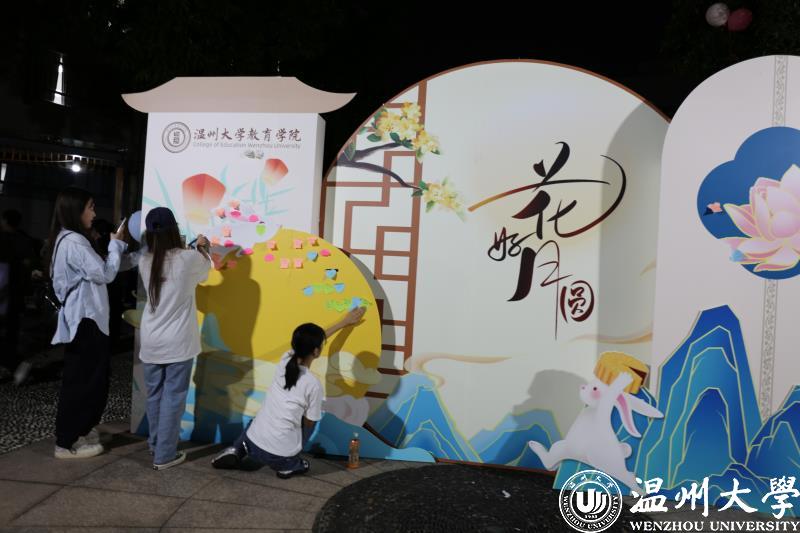 活动现场摆放主题喷绘、“创意签到区”和“中秋祝福墙”,在浓浓的节日氛围中,同学们积极地写下自己极富温情的心愿和祝福。学院中庭设有舞台,打卡区,手工互动区和展示区等多个各具特色的区域,打造别具一格的国风中秋游园会,体现了中华文化的别样魅力。成人网站 因地制宜将现有的开放式场地和木凳子装饰成“露天舞台”,同学们在欣赏美妙歌舞的同时,沉浸于制作专属冰皮月饼和花灯以及猜灯谜、投壶等等极富节日氛围的活动和游戏,感受指尖上的文化艺术传承,体会代代相传中不变的中秋佳节的独特魅力。
