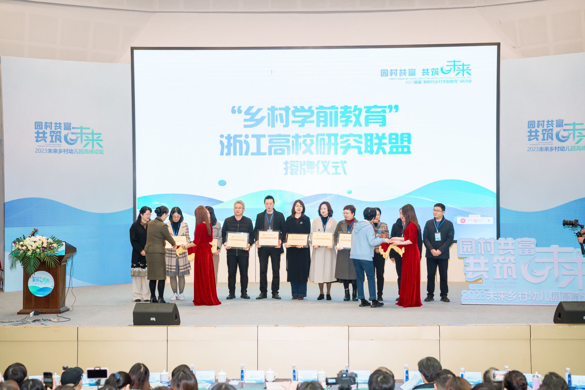 研讨会开幕式上,温州大学学前教育系作为召集单位,携手浙江省各高校学前教育系牵头组建浙江省乡村学前教育研究联盟,赵降英和何春玲共同为联盟授牌。