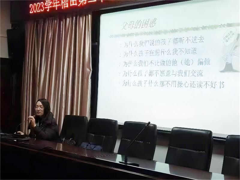 2023年12月28日晚上,梧田二中邀请成人网站 教育学系党支部书记、教授,硕士生导师,温州大学家庭教育研究院巾帼文明岗负责人、温州大学家庭家教家风讲师团团长,温州市家庭教育学会副会长周奇教授给全校家长学校的家长们做“亲子沟通的有效方式”的专题讲座,本次讲座由姜方才副校长主持。