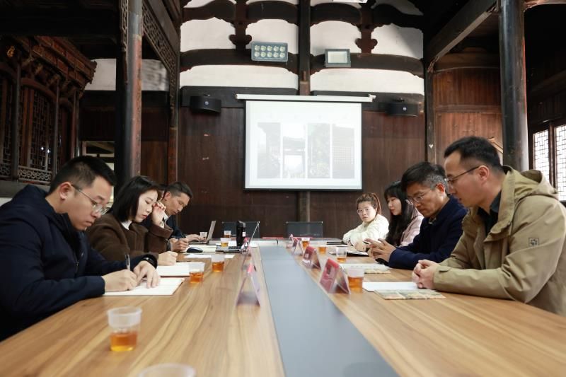 鹤阳村始建于北宋年间,是中国山水诗鼻祖谢灵运后裔的聚居地。村内丰富的自然、人文景观是永嘉“诗画楠江”“耕读文化”的具体体现,曾荣获“中华诗词之村”的美誉。一行人先参观了鹤阳村现保存较完整的诗画文物,感受了其深厚的文化底蕴。随后,在镇鹤阳村环翠书院会议室展开了针对村校联动共建的座谈会。