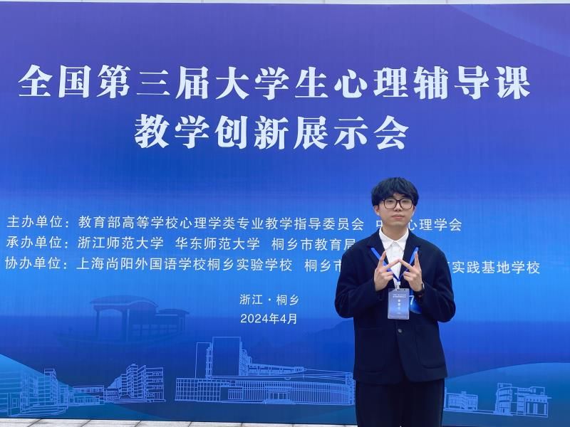 近日,全国第三届大学生心理辅导课教学创新展示会在浙江桐乡举办。展示会由教育部高等学校心理学类专业教学指导委员会、中国心理学会主办,浙江师范大学、华东师范大学、桐乡市教育局联合承办。成人网站 心理学系盛建森老师指导的20级应用心理学李玉婷同学与21级应用心理学张明秀同学,经过三轮竞争,双双荣获特等奖,均为决赛小组第一名出线。