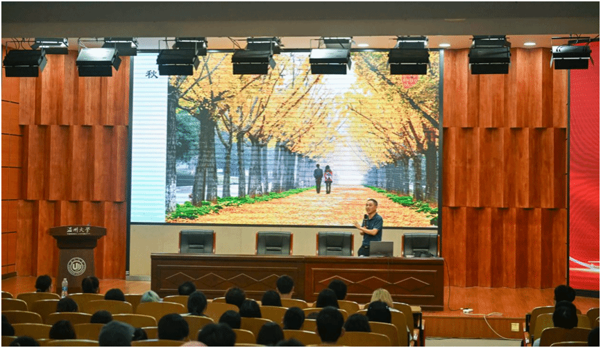 活动吸引了近300位听众。一开场,观众便被一幅幅校园风光、温瑞塘河宋韵风貌、商港历史图景与现代城市活力的影像集锦所吸引,那些承载着地域文化记忆的画面,瞬间唤醒了大家用手机探索本土之美的热情与期待。本次巡讲特邀摄影领域资深专家胡铸鑫主讲,他也是中国图象图形学学会数字文化遗产专业委员会委员,他不仅拥有扎实的摄影技术功底,更对摄影美育有着独到且深刻的理解。