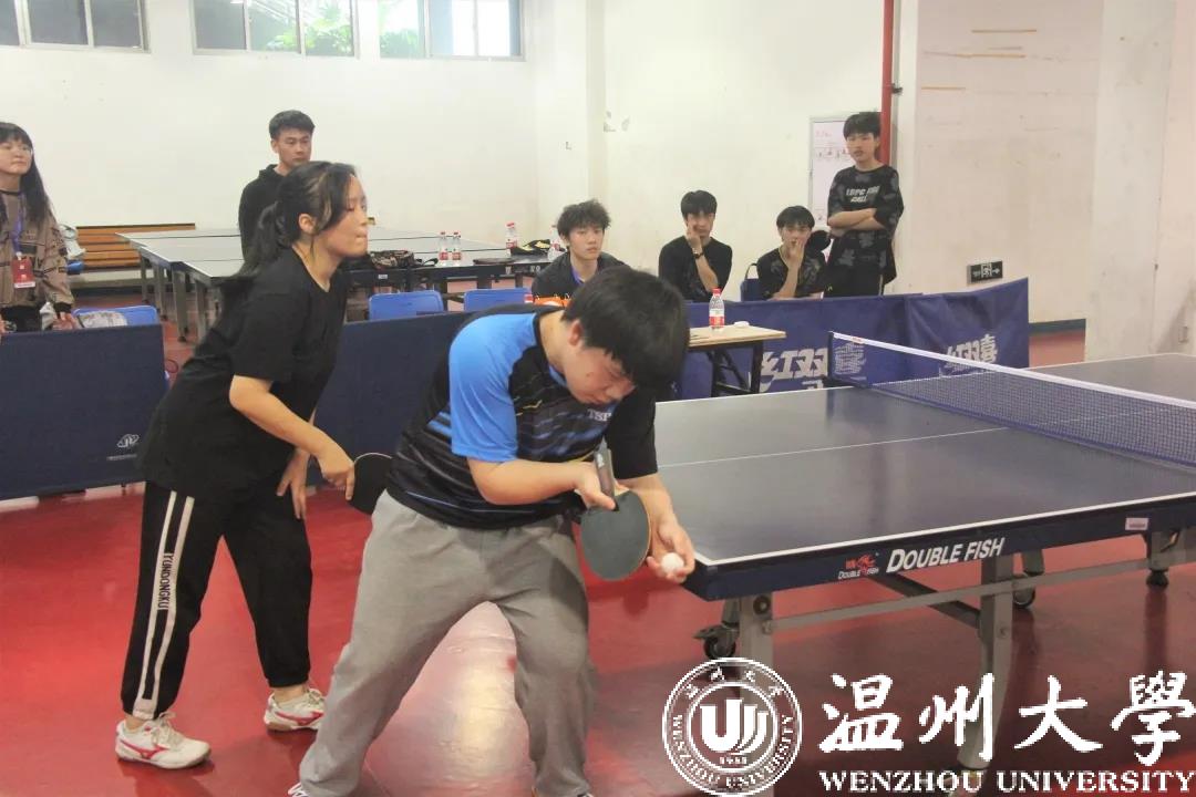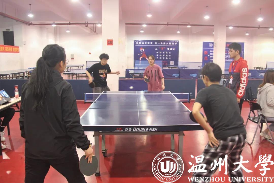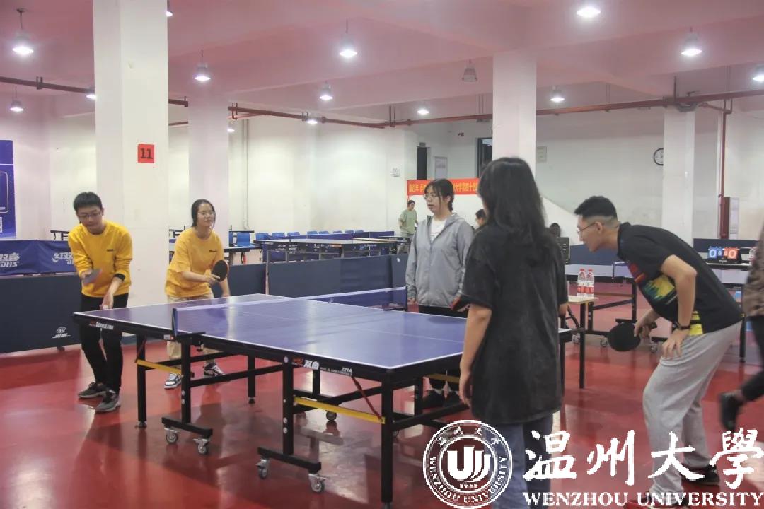 一次次回旋,一个个削搓,球拍与球在赛场上不停碰撞,勾勒出一道道完美弧线,精准落向台面。4月18日,温州大学第四十四届校运会乒乓球比赛在温州大学南校乒乓球馆隆重举行,成人网站 胡圣凯、沈冰伟、朱玥橦、程玲四位同学在金建钰教练的带领下,组成学院代表队参加了此次比赛。