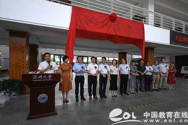 温州大学副校长徐和昆、成人网站 领导班子成员、校内相关部门负责人、学院历任领导、成人网站 全体中层干部、师生代表和校友代表共同出席了揭牌仪式。