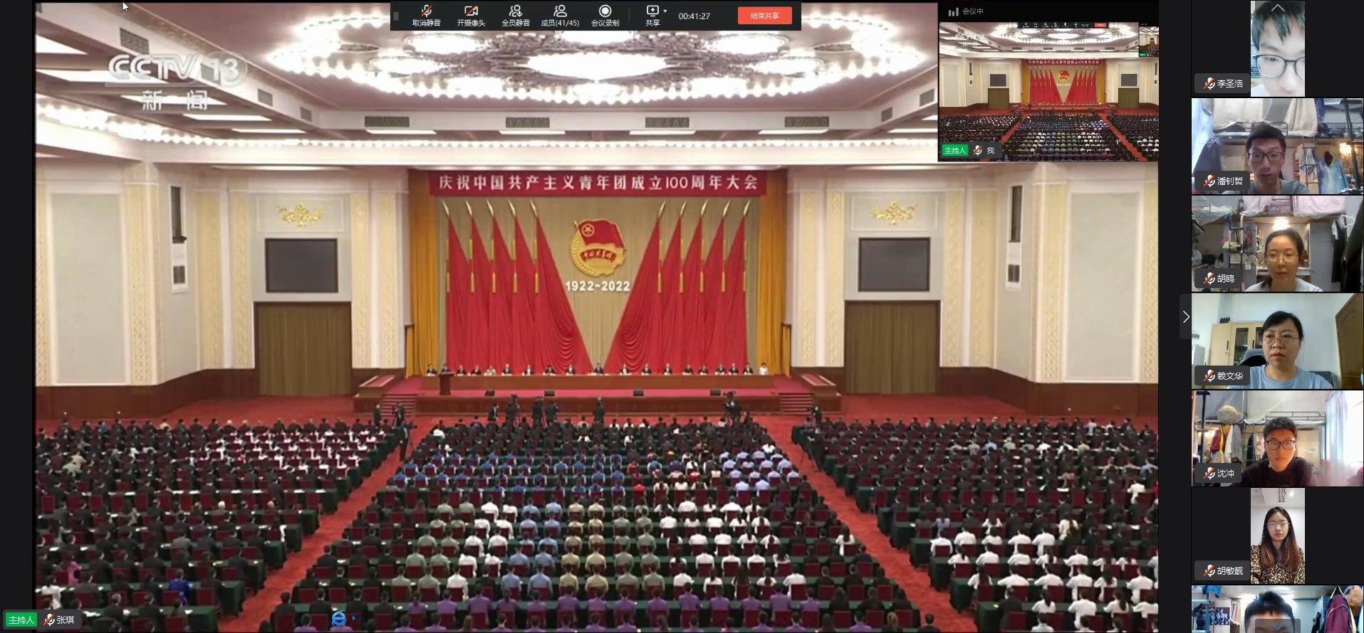 5月10日上午,庆祝中国共产主义青年团成立100周年大会在北京人民大会堂隆重举行,中共中央总书记、国家主席、中央军委主席习近平发表重要讲话。成人网站 组织各班级团支部观看大会直播并进行学习交流。