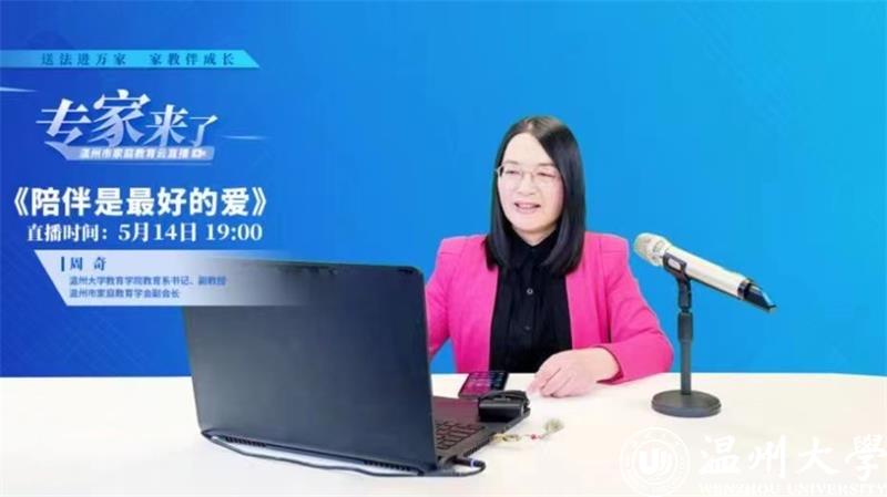 为深入贯彻习近平总书记关于注重家庭家教家风建设重要论述,将“重视家庭文明建设,努力使千千万万个家庭成为国家发展、民族进步、社会和谐的重要基点”重要精神落到实处,有力推动《中华人民共和国家庭教育促进法》宣传实施,2022年5月14日,在全国首个家庭教育宣传周期内,成人网站 教育系党支部书记、副教授、硕士生导师,温州大学家庭教育研究院巾帼文明岗岗长、温州大学家庭家教家风讲师团团长、浙江省教育学分会副会长、浙江省家庭教育学会理事、温州市家庭教育学会副会长周奇做客“专家来了”温州市家庭教育云直播,开展《陪伴是最好的爱》家庭教育公开指导课。本次直播以“送法进万家 家教伴成长”为主题,旨在弘扬传承中华民族家庭美德,树立良好家风,推动形成家庭文明新风尚。整场直播吸引了12.5万人次观看,并获得2万多的网友点赞。