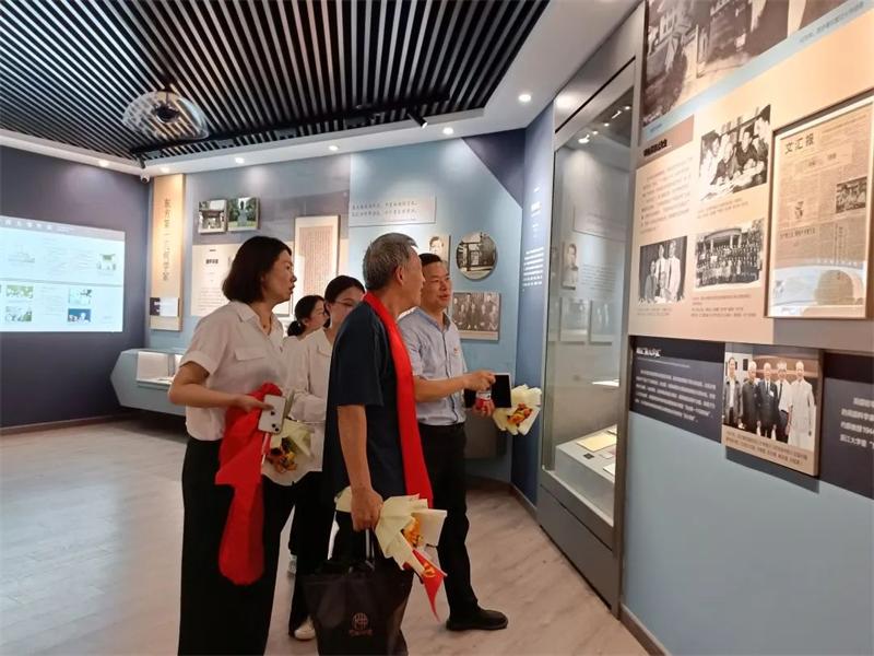 新老党员们移步参观苏步青谷超豪纪念馆。馆厅前两位院士塑像神采奕奕、栩栩如生。展馆走廊内仿真场景、影音视频、媒体互动等技术生动展示了两位院士的丰富经历,在讲解员的带领下,全体党员全方位地了解两位温籍数学家的生平事迹与突出贡献。苏步青先生和谷超豪先生作为温州大学的燃灯者和提灯人,他们浓厚的家国情怀和无私付出精神,至今仍照耀着每一位温大师生。全体党员在聆听讲解和自由参观中,深切感受到苏步青、谷超豪二位老校长潜心钻研、勤学修德、为国为民的崇高精神,并纷纷表示始终不忘初心,牢记使命,坚定理想信念,继续砥砺奋进,将这种精神付诸于行。