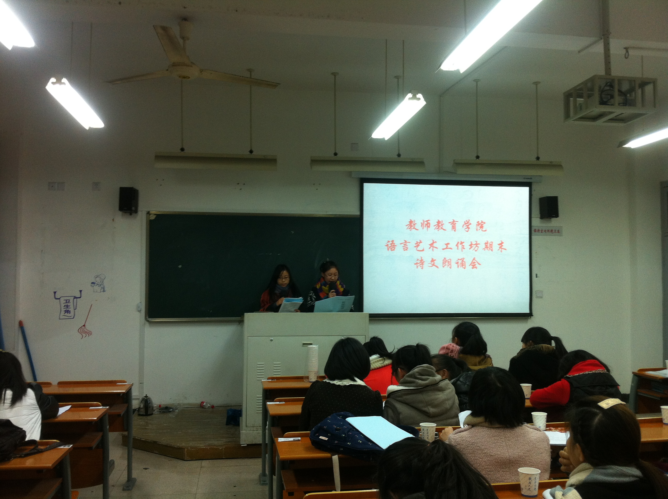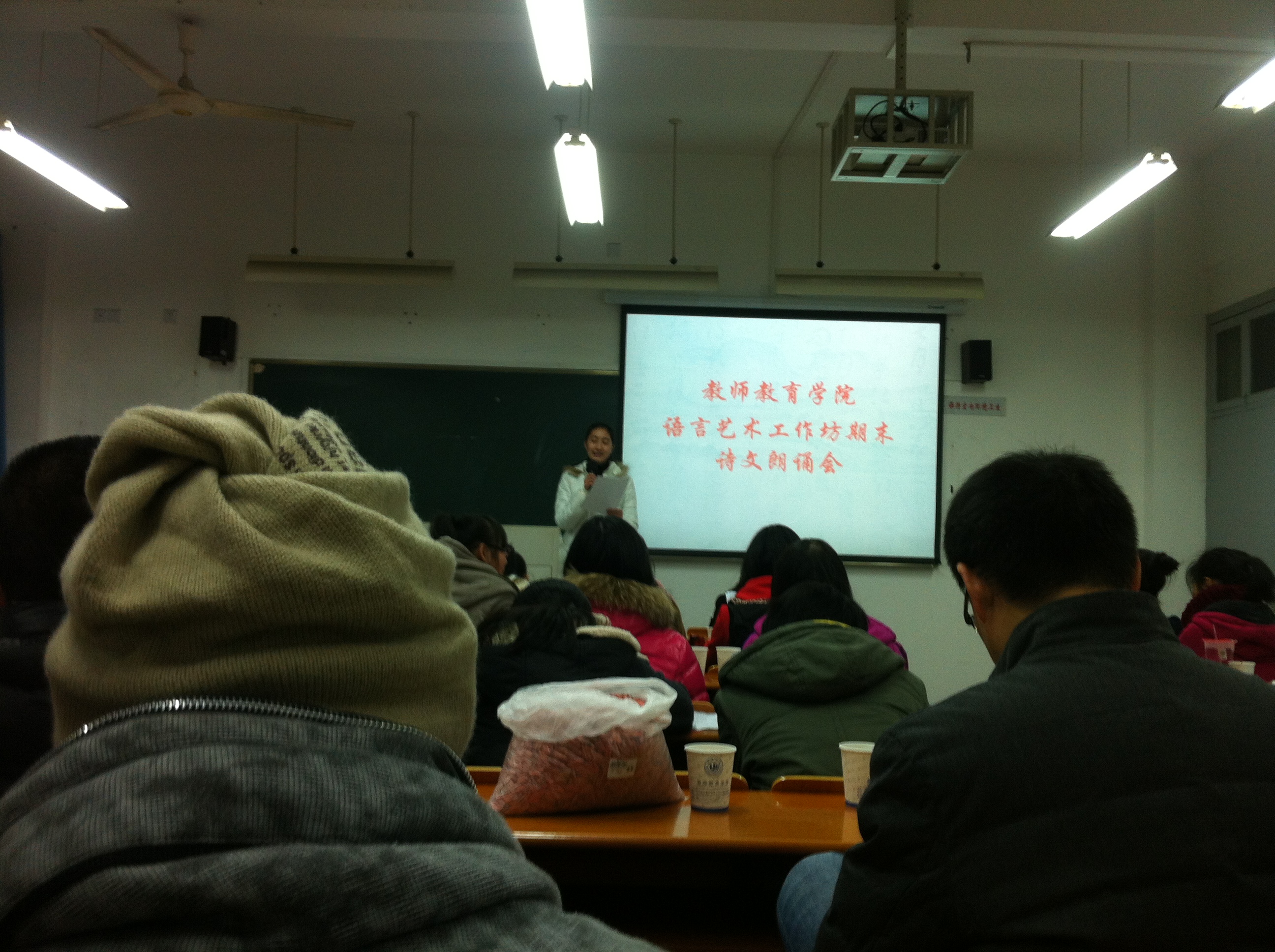 语言艺术工作坊年度朗诵会在北校区教育楼409举行。本次朗诵大会由叶郁佳主持,蔡联群书记、宋一帆老师及语言工坊全体人员参加了本次朗诵会。