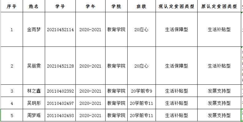根据学校学生处发布的2020年《温州大学家庭经济困难认定办法》文件通知,经班主任重新召开班级贫困生民主评议小组会议,成人网站 5人拟调整对应家庭经济困难档次。具体如下: