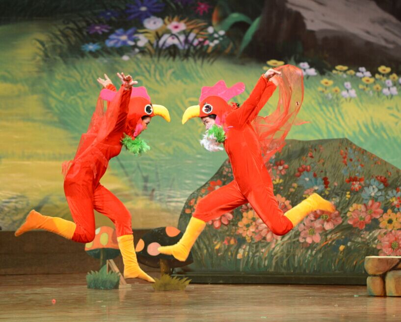 本届公演的儿童剧《我不要被吃掉》是根据法国作家克里斯提昂·约里波瓦同名图画书改编。全剧四幕,主要讲述一群勇敢的小母鸡和一只绵羊组成鸡羊特工队,深入森林迷宫,感化牛头人,拯救被狐狸兄弟抓走的六只小公鸡的故事。剧情曲折,高潮跌出,散发着生命的原初之美。台上的演员们张弛有力的表演,台下的小朋友看的津津有味,他们时而为小主人公命运担忧,时而配合剧情高声呼喊,台上台下互动热烈,浑然一体。演员们生动活泼的演绎,让一幕幕扣人心弦的故事揭示了一个个易懂的人生哲理,让现场小观众享受到了一场美妙的视听盛宴。本次公演的《我不要被吃掉》是一个历时80分钟的大型童话剧,相对往届公演,无论在剧本创作上还是表演上都是一个突破,对儿童剧社的师生也是一个挑战。