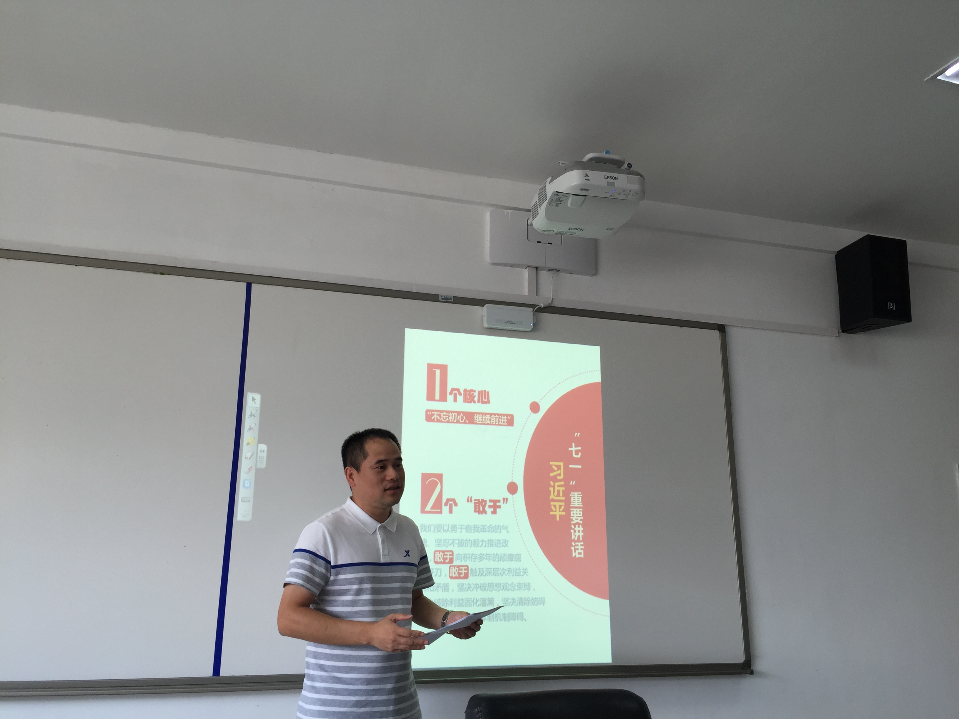 在南校区9A410会议室召开理论中心组学习会议,围绕《习近平总书记在庆祝中国共产党成立95周年大会上的讲话》、《中国共产党问责条例》、《关于加强新形势下高校基层党组织建设的若干意见》、《关于认真做好中央和省委重要会议精神传达学习的通知》等系列文件进行学习研讨。学院领导及党总支委员参加了会议。会议由党总支书记杨立淮同志主持。