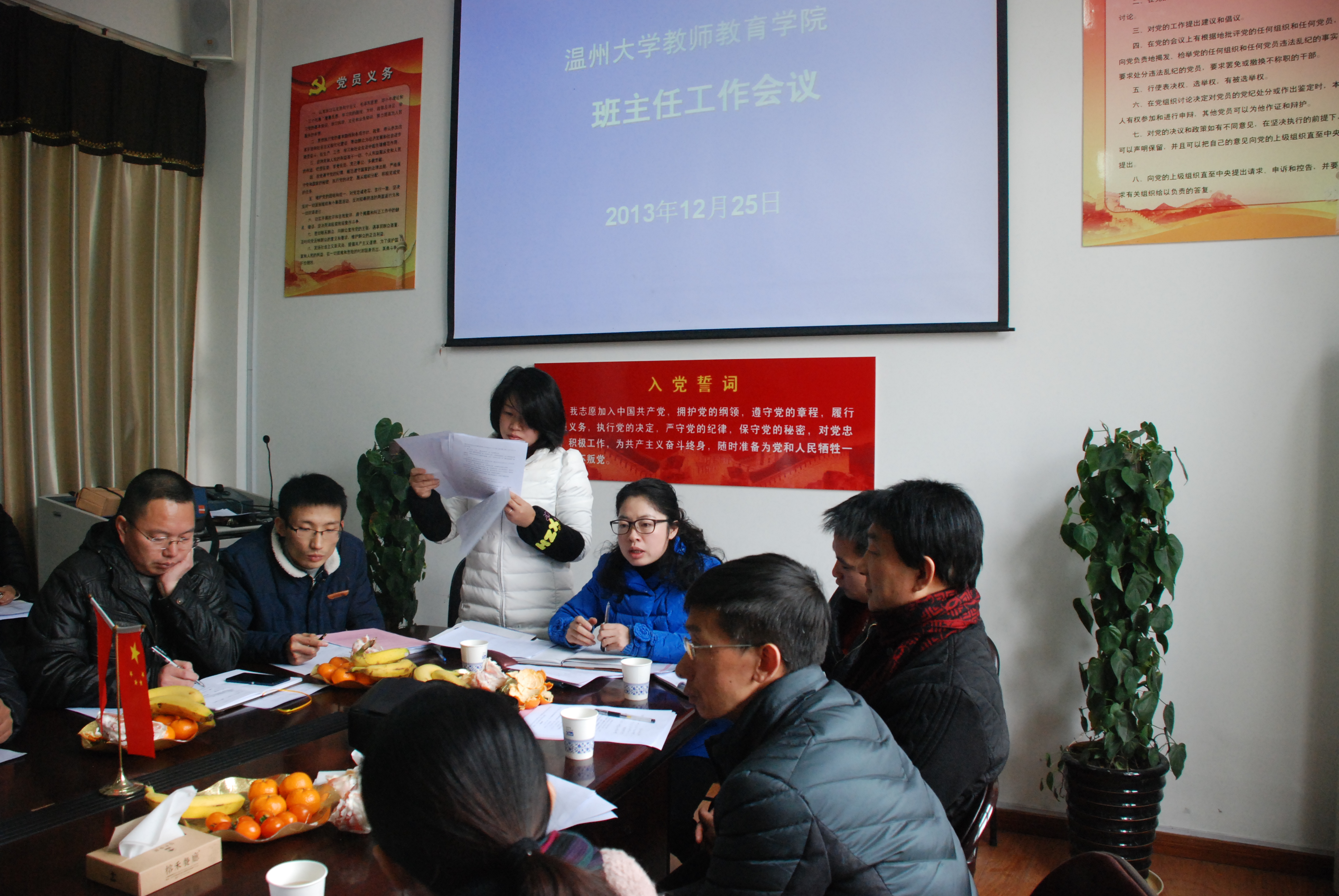 2013-2014学年第一学期期末班主任会议在院党员之家召开。院党总支副书记嵇小怡、学生科副科长陈秀雅、学区片儿警陈铎及全体班主任、辅导员参加了本次会议。